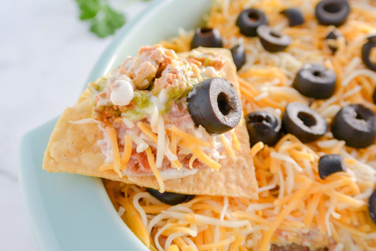 I absolutely love this 7-layer bean dip! I don’t care how many layers there are, just hand me the tortilla chips. It’s even more satisfying when you don’t have to feel guilty eating it. I have made this dip multiple times and every time, it’s hard to walk away from it without dipping a chip for another bite.